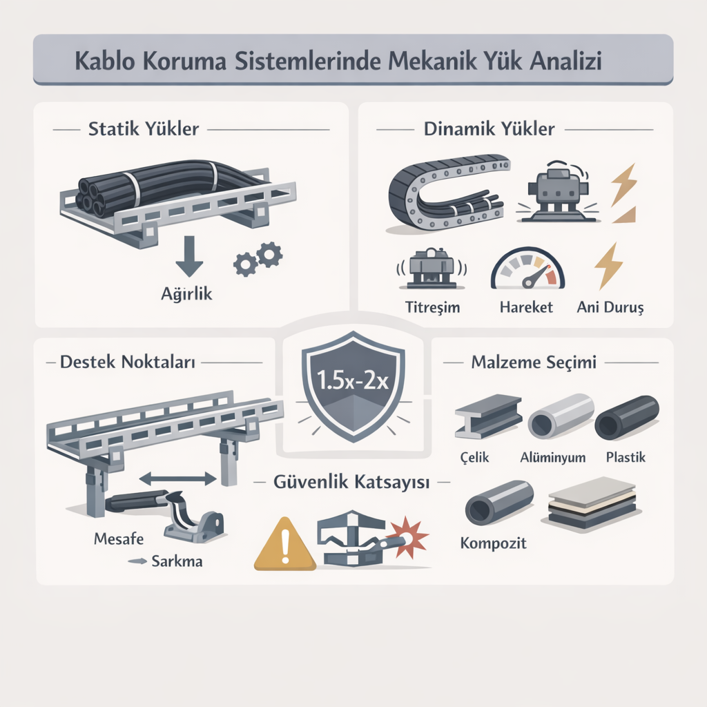 Bu nedenle kablo koruma sistemleri tasarlanırken mekanik yük analizi mutlaka yapılmalıdır.