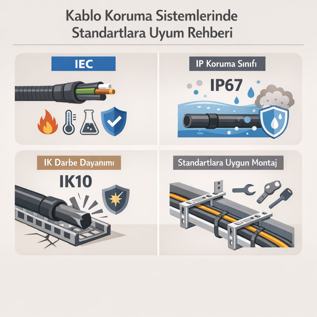 Bu rehberde kablo koruma sistemlerinde standartlara uyumun neden önemli olduğu, hangi standartların dikkate alınması gerektiği ve uygulama sırasında nelere dikkat edilmesi gerektiği detaylı şekilde ele alınmaktadır.