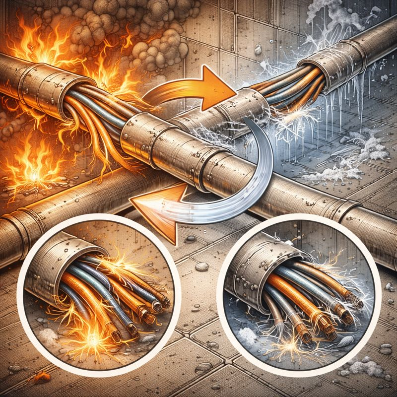Endüstriyel tesislerde kablo koruma sistemleri, çoğu zaman mekanik darbe, kimyasal maruziyet ve çevresel aşınma gibi risklere karşı tasarlanır. Ancak sahada giderek daha sık karşılaşılan ve genellikle gözden kaçan bir başka yıkıcı etki vardır: thermo-shock (ani sıcaklık şoku). Thermo-shock, kablo koruma sistemlerinin kısa süre içinde yüksek sıcaklıktan düşük sıcaklığa (veya tam tersi) maruz kalmasıyla ortaya çıkan hızlı genleşme–büzülme sürecini ifade eder. Bu süreç, malzeme içinde ani gerilmeler oluşturur ve uzun vadede ciddi yapısal hasarlara yol açar.