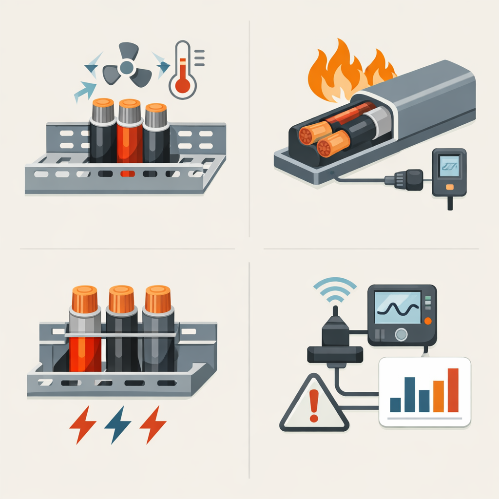 Kablo doluluk oranı da çoğu projede küçümsenen ama sonucu doğrudan etkileyen bir detaydır. Aynı kanal veya tava içine gereğinden fazla kablo yerleştirildiğinde hava akışı azalır. Özellikle faz kabloları, güç kabloları ve yardımcı hatlar düzensiz şekilde üst üste geldiğinde lokal sıcak noktalar oluşabilir. Bu nedenle yüksek akım hatlarında kablo gruplama düzeni dikkatle yapılmalıdır. Fazların dengeli yerleşimi, yeterli kablo aralığı ve gerektiğinde ayrı bölmeli sistem kullanımı, termal performansı ciddi biçimde iyileştirir.